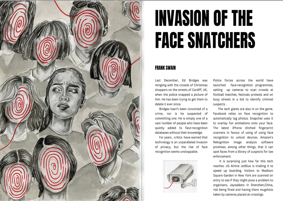 Editorial illustration responding to an article on the topic of government surveillance.